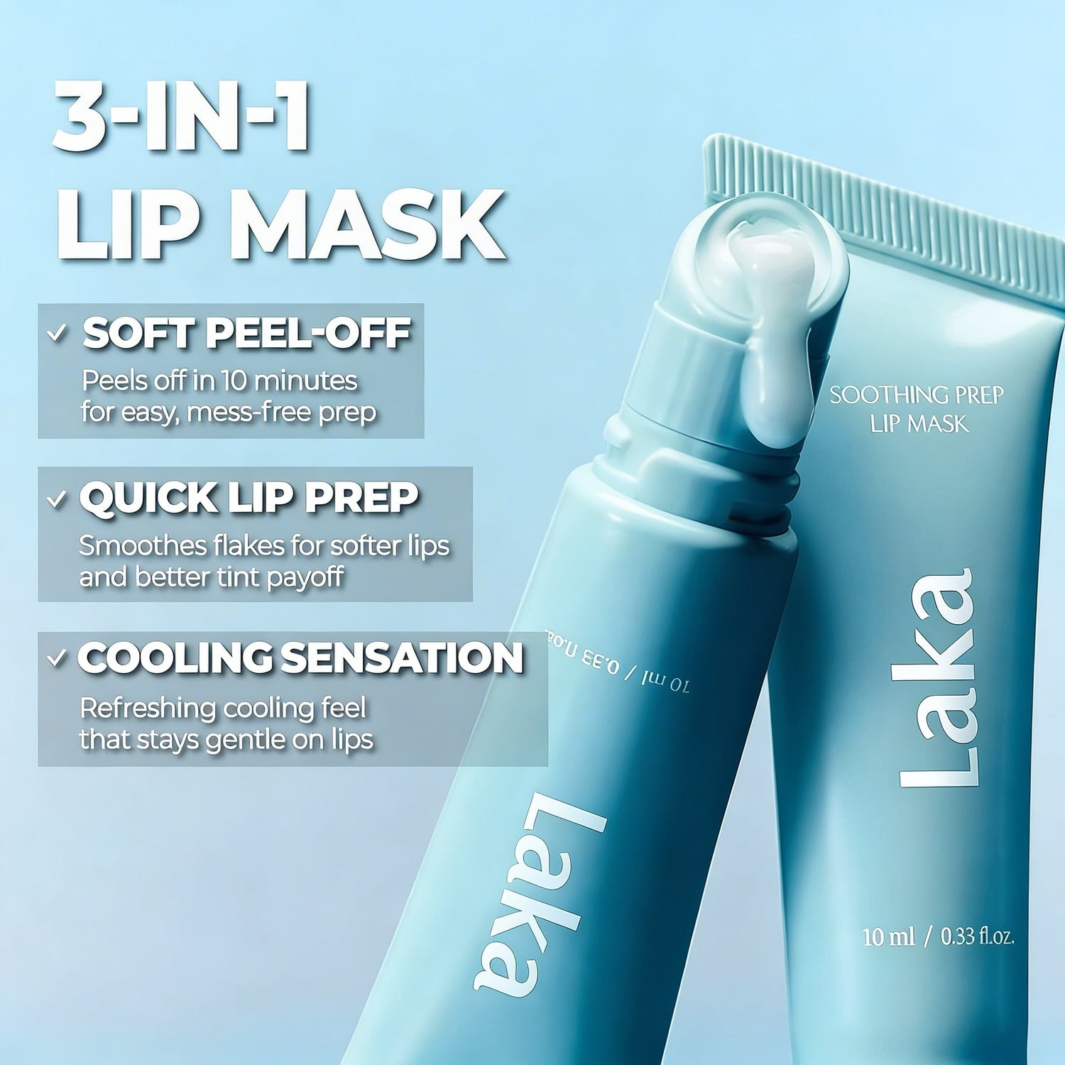 Transform dry, flaky lips into soft, hydrated perfection in minutes. The Laka Soothing Prep Lip Mask gently removes dead skin while locking in moisture for a flawless look every day.
